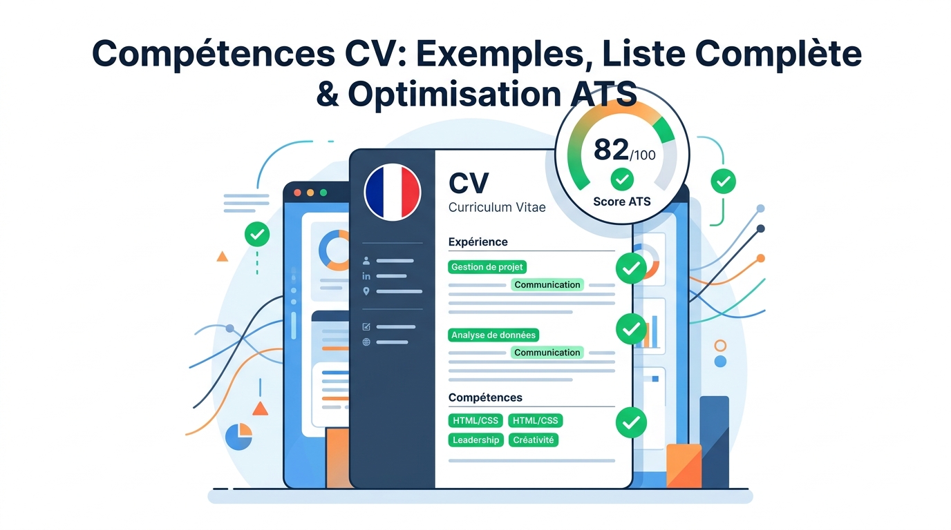 Compétences CV : liste complète par secteur, exemples concrets et méthode pour scorer au-dessus de 70/100 dans les ATS français. Mis à jour 2025.