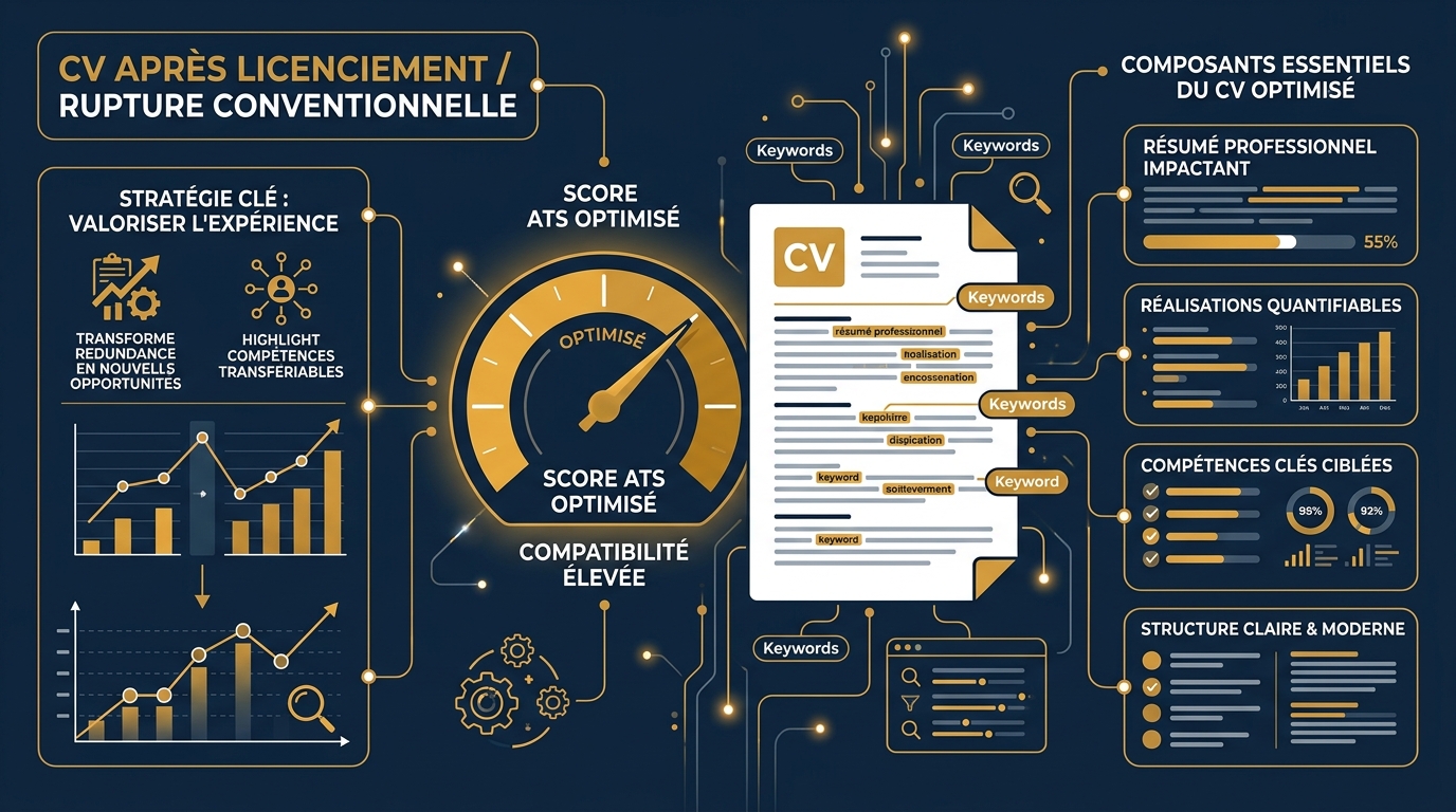 Chaque année, des centaines de milliers de salariés français se retrouvent en recherche d'emploi après un licenciement ou une rupture conventionnelle. Selon la DARES, en 2023, plus de 440 000 ruptures conventionnelles ont été homologuées en France, un chiffre en hausse constante depuis dix ans. Ajoutez les licenciements économiques et personnels, et vous obtenez un flux massif de candidats qualifiés qui remettent leur CV à jour dans des conditions souvent stressantes.